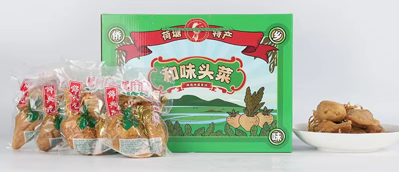 荷塘冲菜,舌尖上的故乡。被誉为‘荷塘鲍鱼’的荷塘冲菜,是咸香爽脆的‘五邑八宝’,也是一张远销世界的味觉名片。如今还有创新之作,冲菜腊肠、冲菜曲奇、冲菜蛋卷等衍生佳品,等您解锁传统风味的新体验。