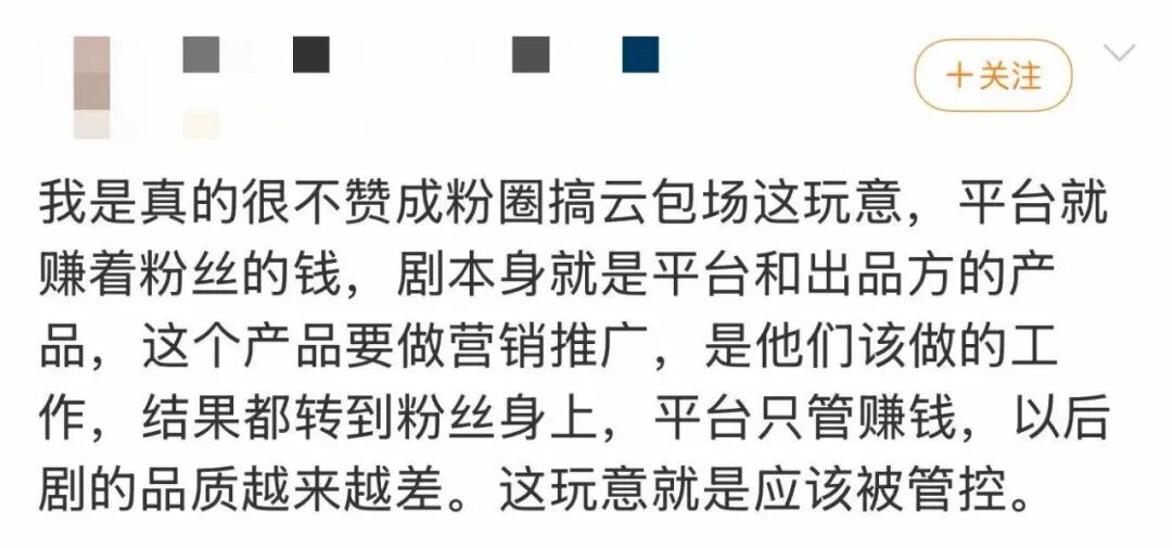 如果早期的云包场还包含粉丝对演员、剧集的情感表达,现在则更像一场赤裸裸的“权利游戏”。包得多,发声就大;包得少,就只能沉默。