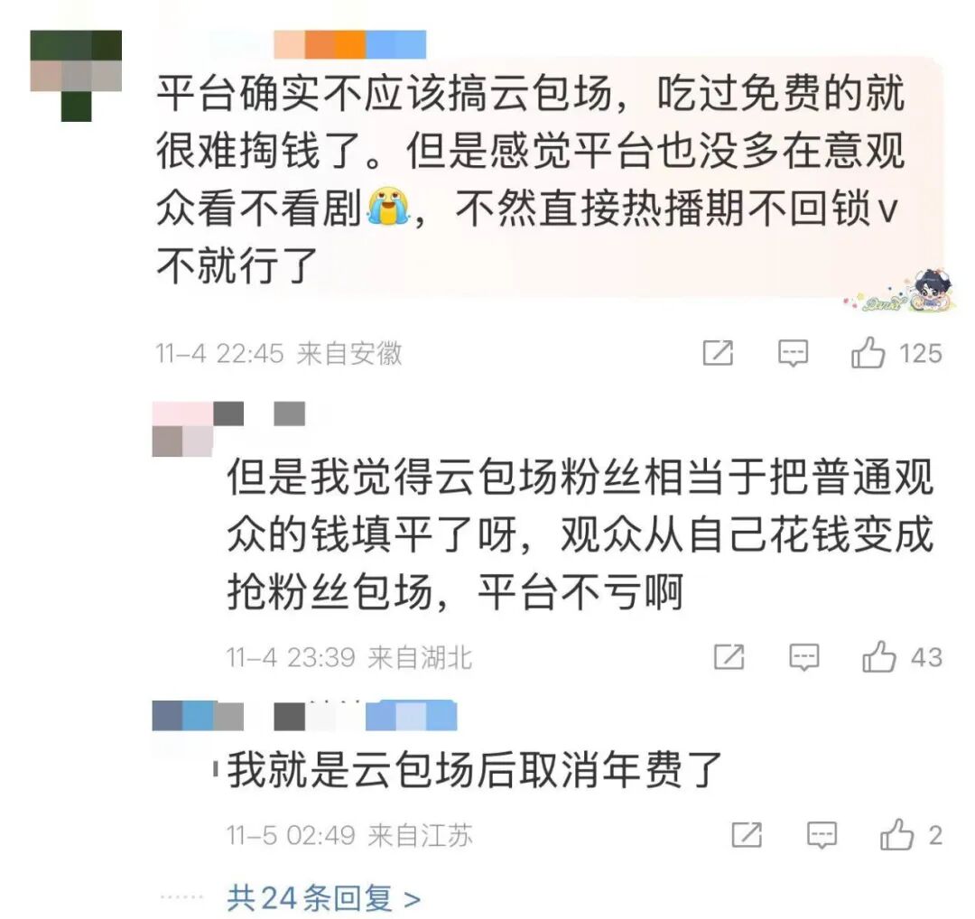 粉丝清楚,云包场的钱流入平台账户,平台会在选角、排播、推荐资源上考虑粉丝的利用价值。一句“不花钱”,足以让制作方和平台犹豫。也就是说,谁掌握云包场的大头,谁就有与平台谈判的筹码。