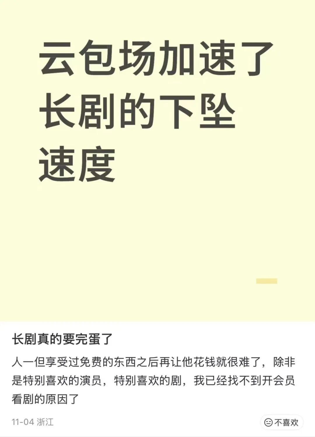 然而,在“后云包场时代”的喧嚣中,我们看到的并非日益繁荣的流量市场,而是一种“杀鸡取卵”式的虚假繁荣。观众的付费习惯被稀释,剧集的真实口碑被掩盖。短期收益的背后,是长期信任的崩塌。