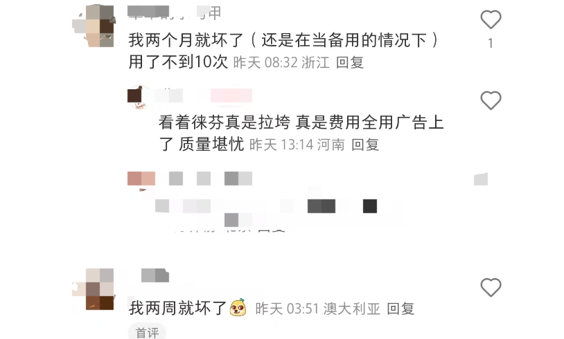 有观点认为,徕芬作为快速崛起的网红品牌,前期把大量资源投入营销,打造“戴森平替”“高速护发”等概念,但在核心技术研发和品控管理上可能存在不足,导致质量问题频繁出现。
