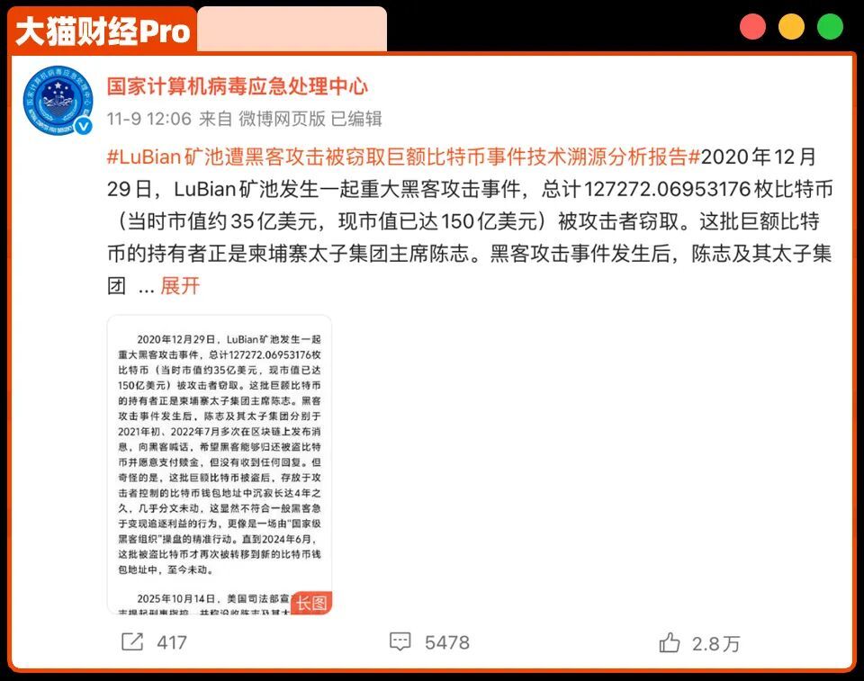 直到2024年6 - 7月,这批比特币被转移到另一个钱包。1年多后,美国司法部对柬埔寨太子集团老板陈志发布起诉书,才公布了这批比特币的下落——127272枚比特币已在美国政府手中,市值涨到了150亿美元(约1000亿人民币),并被认定为赃款予以没收,而当初的黑客竟然就是美国政府。