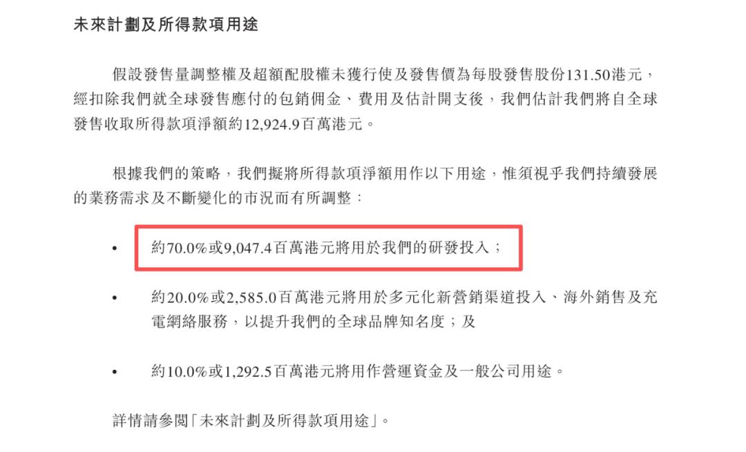 据招股书披露,赛力斯此次IPO募资净额达140.16亿港元,其中70%将用于研发投入。