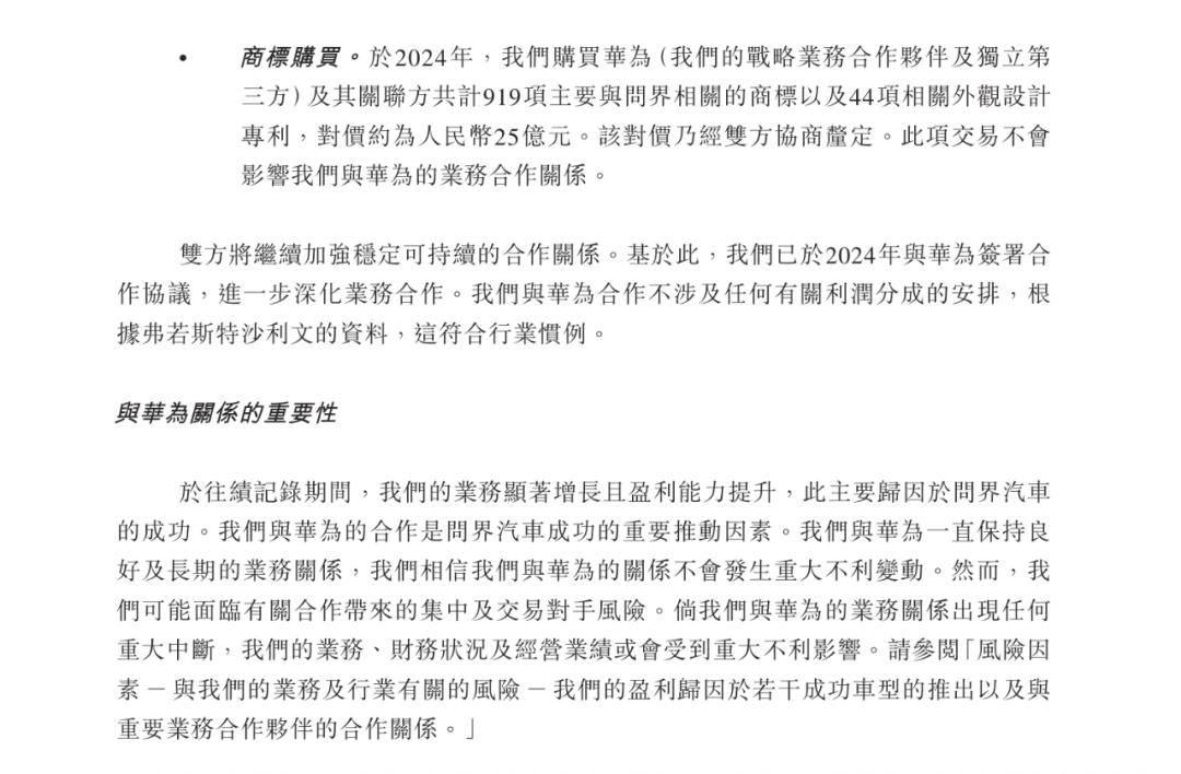 值得注意的是,赛力斯招股书提示了高度依赖华为的风险。