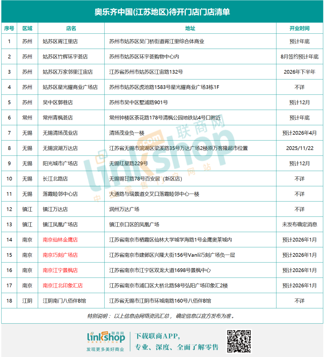 经过6年多的发展,截至2025年10月底,奥乐齐中国市场门店总数达到80家,覆盖上海及江苏多地(苏州、无锡、昆山、常州)。而在江苏,奥乐齐目前已有10家店开业。
