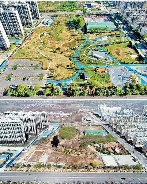 悦动公园改造前后对比图。临城县住房和城乡建设局供图