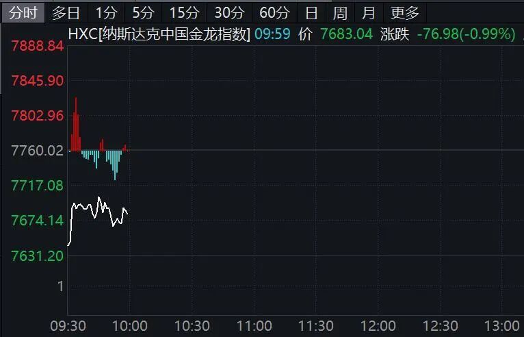 中概股方面,纳斯达克中国金龙指数走低,截至发稿,跌幅近1%。个股方面,蔚来跌幅超2%,小鹏汽车跌幅近2%,百度集团跌幅近1%,微博小幅上涨。