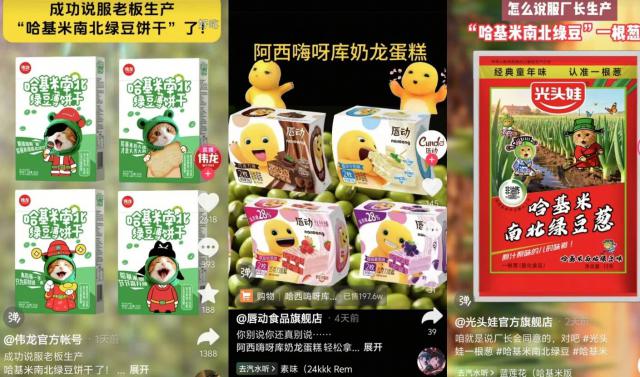 看到九阳尝到了甜头,其他厂商纷纷跟进。有人推出哈基米南北绿豆包、哈基米南北绿豆糕、南北绿豆酸奶,还有各种文创周边。老牌国货也抓住流量密码,伟龙饼干推出哈基米南北绿豆饼,光头娃要做南北绿豆葱,蜂花想推出南北绿豆味洗发水,还有厂商和奶龙联名推出哈呀库奶龙蛋糕。甚至漫步者耳机也参与其中,网友调侃漫步者家里请了“哈基高”。