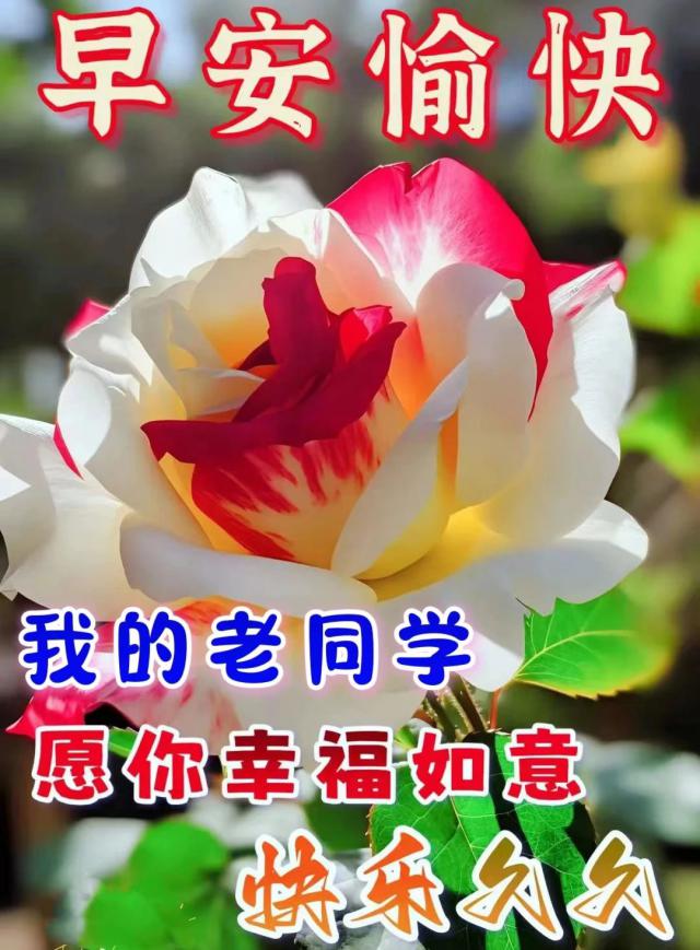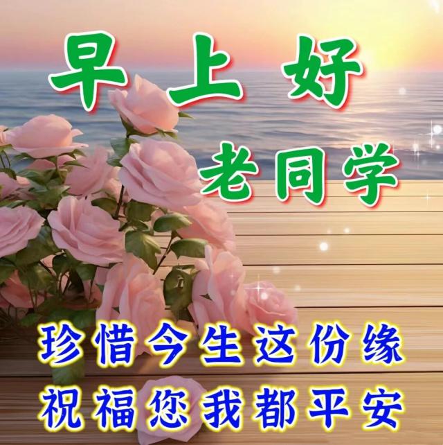 祝福是心中所愿,友谊是彼此财富,健康快乐是共同目标。相识是心灵缘分,相惜是人生风景。愿这份真诚美好的友谊,永远留在心间!祝你平安健康、快乐精彩每一天!早安吉祥,老同学!