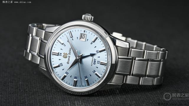 表盘 12 点位置镶贴了一枚金色的“ GS ”标志,以此纪念品牌 9S 机芯诞生 25 周年,凸显了这枚腕表的独特性。
