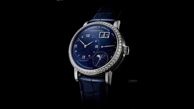 同系列中,樊振东还戴过“星月交辉”月相腕表。其表盘用深蓝色砂金石玻璃打造,如星空般璀璨。表圈镶嵌 56 颗明亮式切割钻石,总重约 1.2 克拉。内部搭载朗格自制 L121.2 机芯,月相装置精准度达 122.6 年,动力储存 72 小时。
