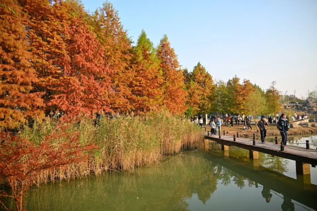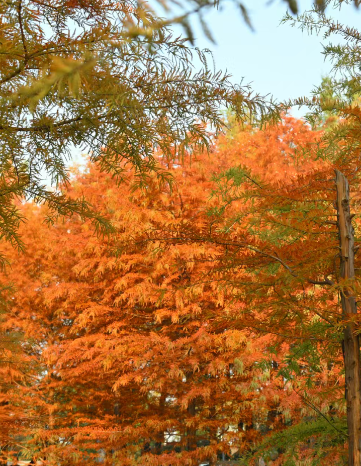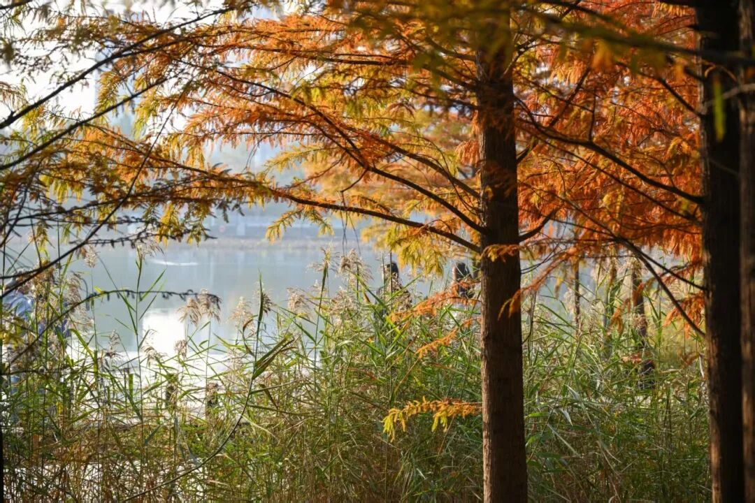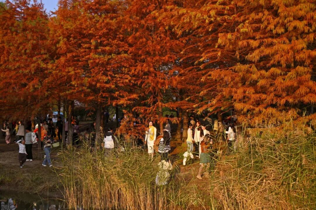 水杉已悄然换上“红金战袍”,随手拍都是壁纸级大片。