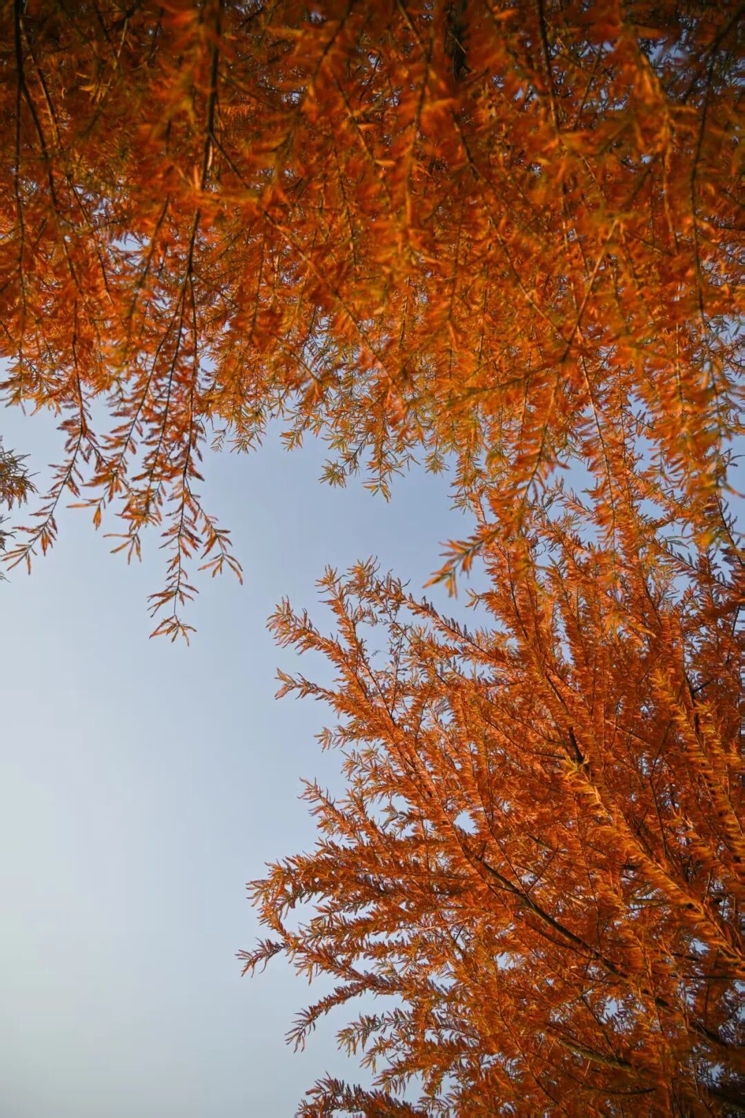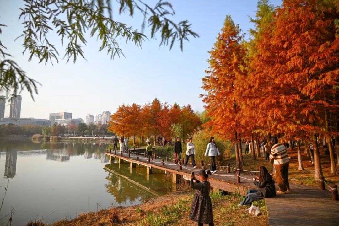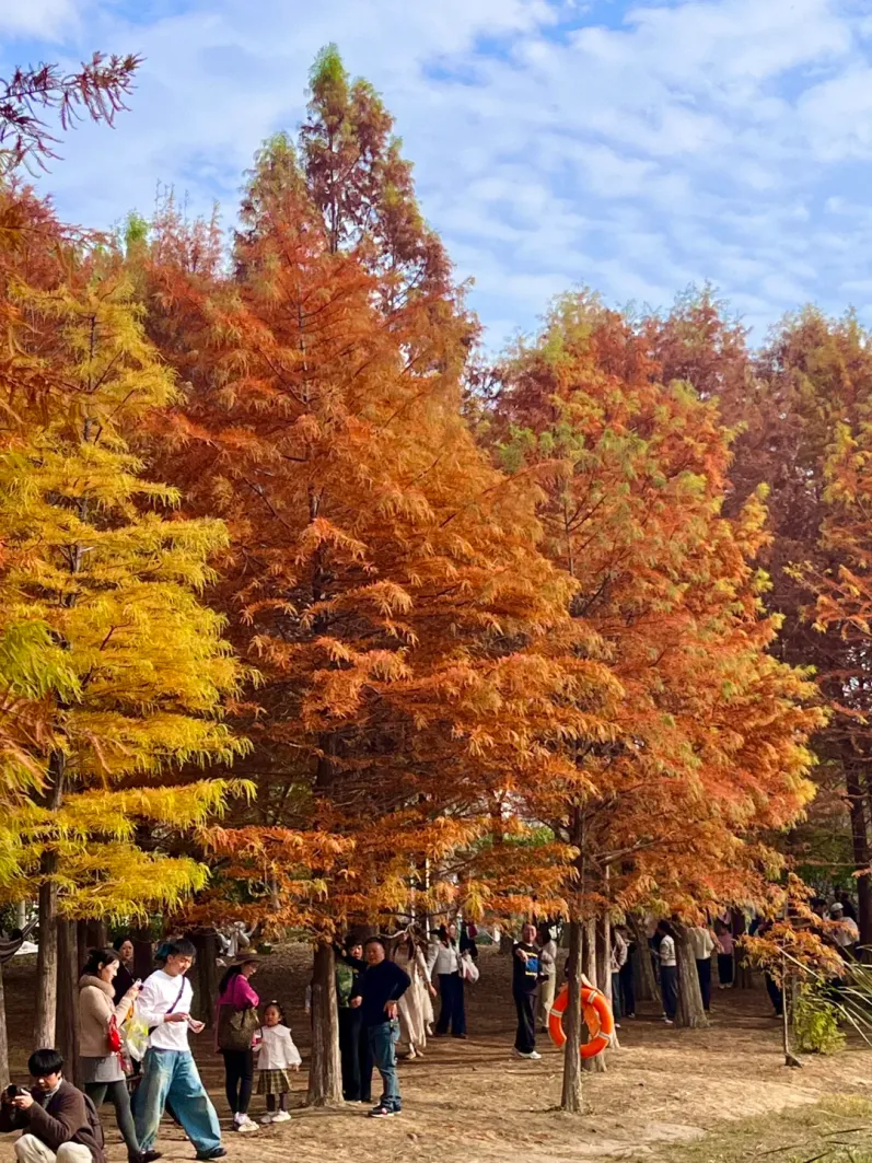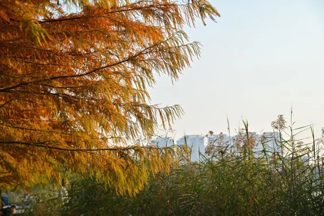 水杉已悄然换上“红金战袍”,随手拍都是壁纸级大片。
