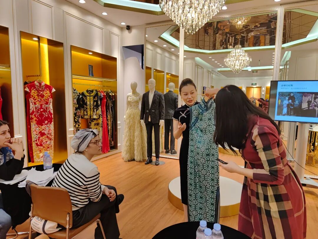近日,“走进虹口——虹口区外国人才中文培训班(秋季班)”的结业课程别具一格,将课堂搬到了蔓楼兰海派旗袍门店。来自本市各大高校、科研机构以及本区外资企业的外籍人才们,得以近距离感受海派旗袍的独特魅力和上海文化的深厚底蕴。