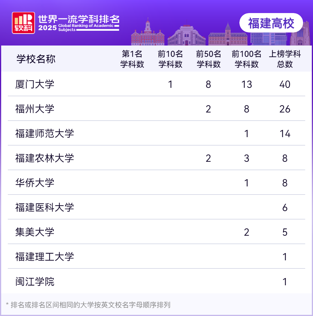 2025软科世界一流学科排名发布,福建9所高校109个学科上榜