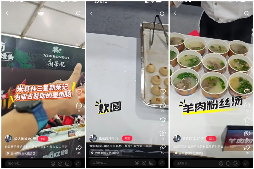 「越野跑补给站,被年轻人吃成流水席」。月初结束的柴古唐斯越野赛,被越野跑爱好者赞为「补给天花板」、「大型自助餐」。除了常规补充碳水的食物,赛后临海特色美食区还有米其林三星「新荣记」,跑者既能跑爽,又能吃爽。
