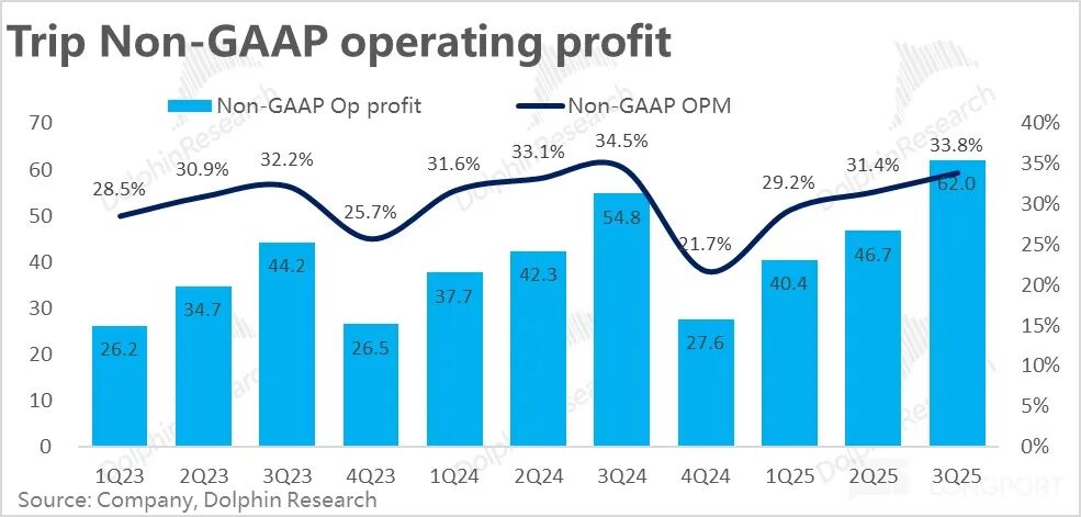 随着海外业务进一步成熟,投入减少、利润率提升,携程利润增长大概率会向收入增速靠拢,甚至实现反超。