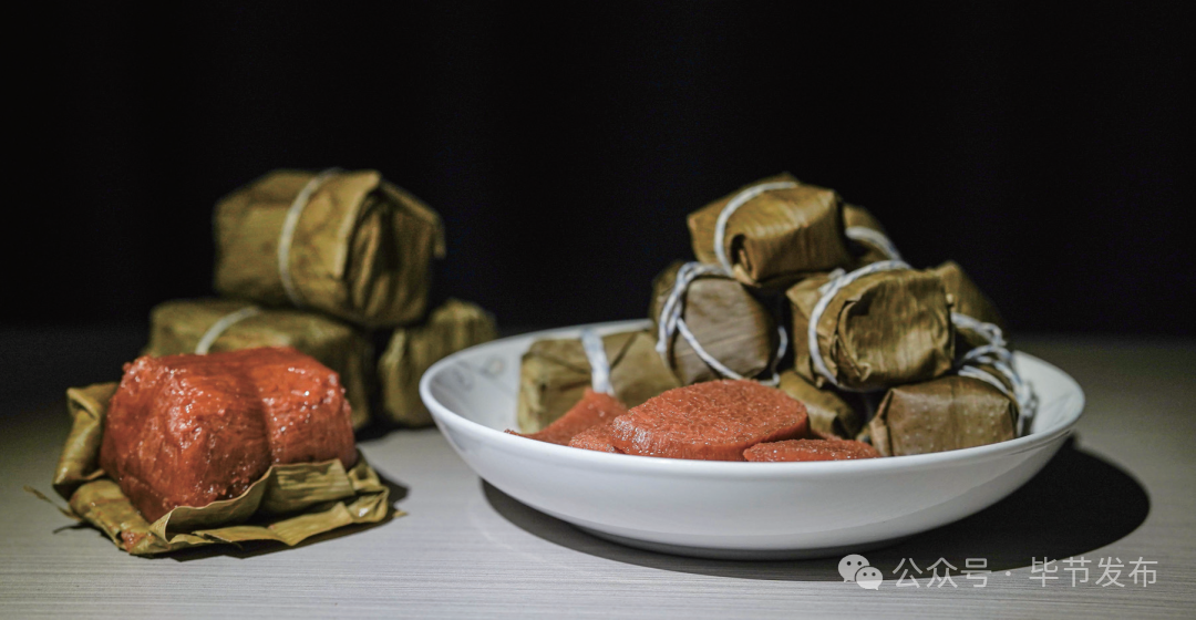 黔西黄粑的主要原料包括糯苞谷、优质糯米、黄豆等。利用捆扎黄粑的粗线将其分片,放在烤盘上,随着温度上升,黄粑越发黄润晶莹,并散发出诱人的糯香,吃上一口,唇齿间满是软糯香甜。