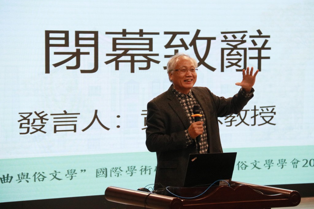 中国俗文学学会会长、北京大学中文系潘建国教授在致辞中指出,本次中国俗文学学会年会与“戏曲与俗文学”国际学术研讨会合办后,参与人数创历史新高。他代表学会向所有支持并参与会议的学者表示感谢,并从文体学角度报告了近期研究成果。