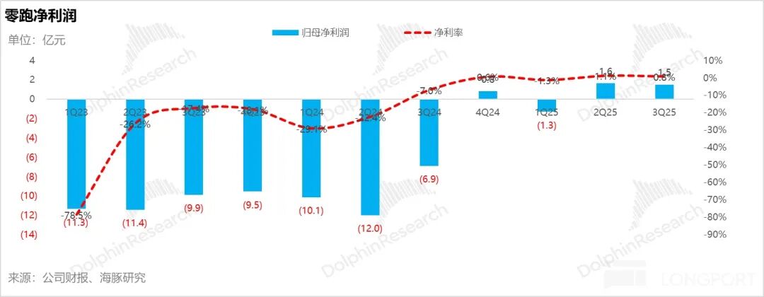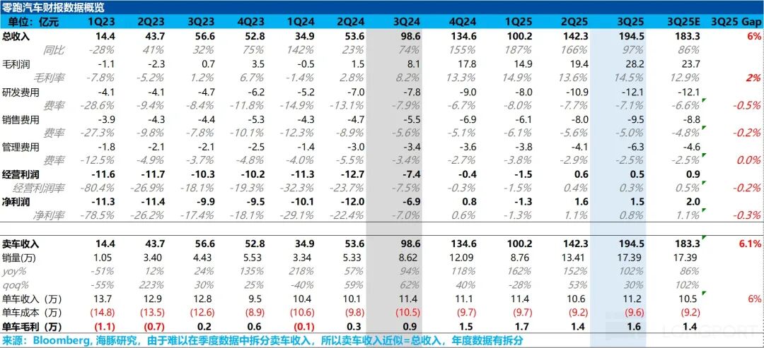 总体而言,零跑三季度总收入和毛利率表现不错,继续环比改善,均超出市场预期。但净利润因三费环比大幅增加而被侵蚀,呈现环比下滑趋势,也低于市场预期的2亿元。