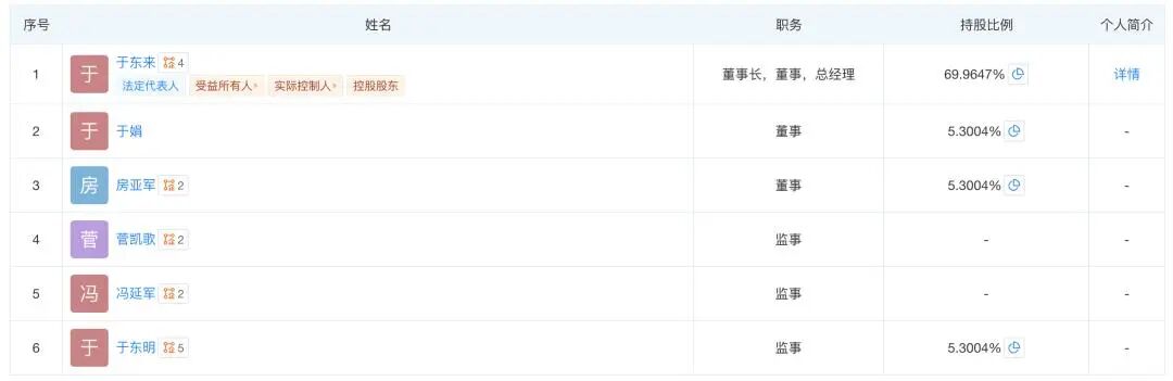 目前,胖东来创始人于东来是公司法定代表人和实际控制人,持有69.96%的公司股份。于娟、房亚军和于东明均持有公司5.3%的股份。