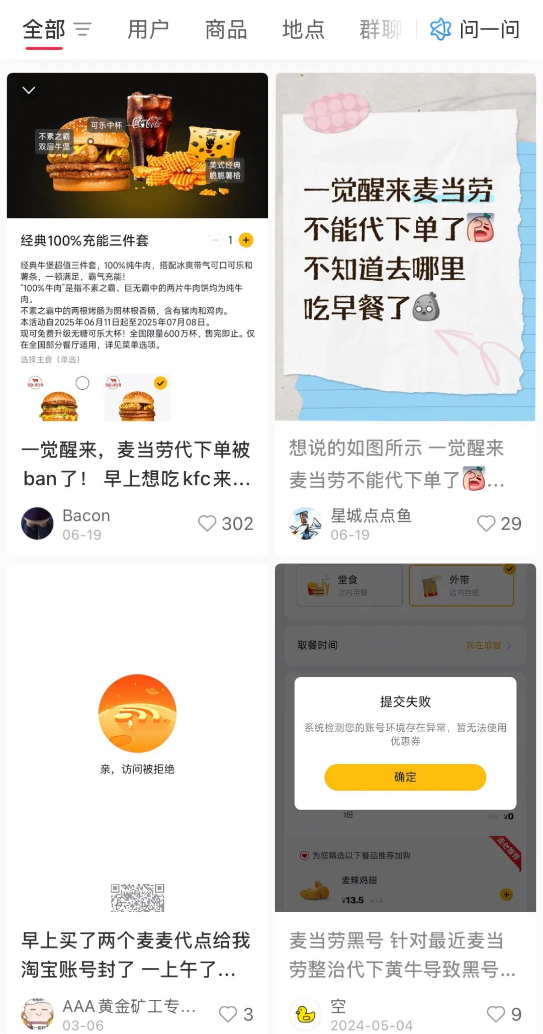 今年5 - 6月,很多消费者喊“麦当劳不能代下单了”。可能是品牌限制异常账号,封禁了一批“代下单”账号。之后,我常用的“代下单”公众号套餐涨价了。