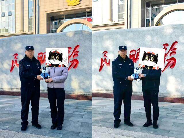 (平谷分局人口中队民警给举报线索群众发放公仔奖励)