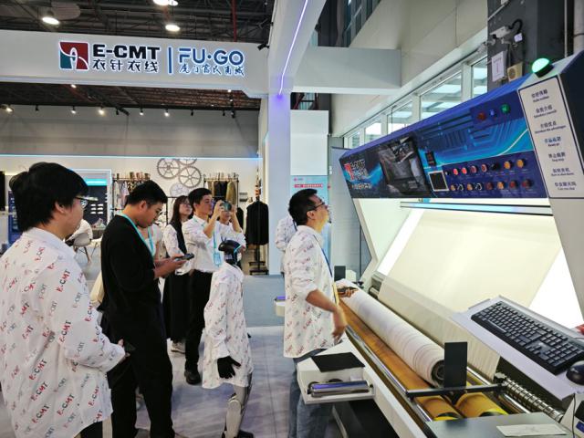11月18日,2025世界服装大会活动现场,陈铭铸正在调试一台AI质检一体机。随着云机—花布AI质检一体机匀速运转,一道无形的数字光束在面料上游走,布料上的瑕疵被AI大模型一一精准高效地识别出来。这一场景已在虎门衣针衣线生产车间运行一年多了。