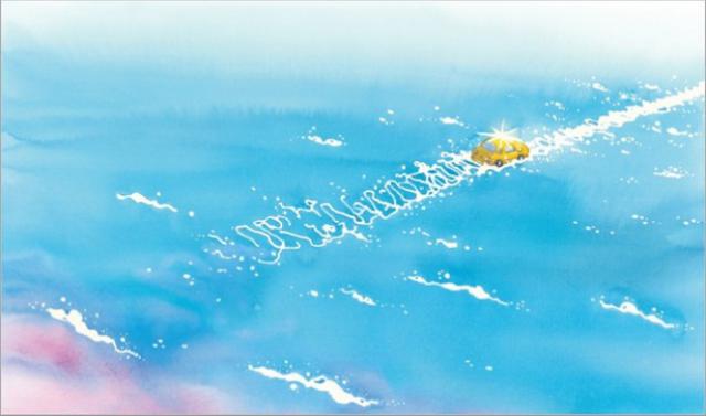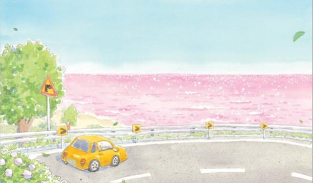 他先路过了一片如同云朵般柔软的小憩服务区,忍不住停下车子,像回到童年时那样酣睡了一场;接着又经过了“宇宙最佳餐厅”,吃到了一盘味道酷似妈妈手艺的饭菜——那熟悉的味道,让他眼眶都差点红了。他继续往前开,也不知开了多久,突然一片粉色的大海出现在眼前。海浪轻柔,夕阳美如梦幻,那一刻,阿嘟感觉积压在心底许久的疲惫,一下子被海风吹散了。