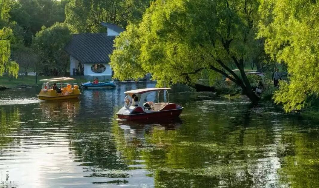 上理教师刘长庚认为,共青森林公园的“盈湖泛舟”堪称“顶级”。他常课后带学生去划船,盈湖水面清澈、波光粼粼,特别有徐志摩诗里的康桥风貌:“河畔的金柳,是夕阳里的新娘”。