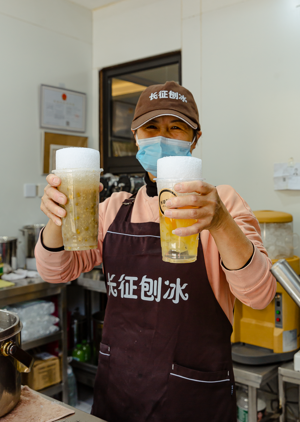 从上理工到版专只需1.6公里,沿途的控江路和水丰路,有着不少毕业生魂牵梦绕的“杨浦滋味”,像控江路上的“长征刨冰”、水丰路上的锅贴、蛋饼等,几乎是所有新生来杨浦的“必吃榜单”。