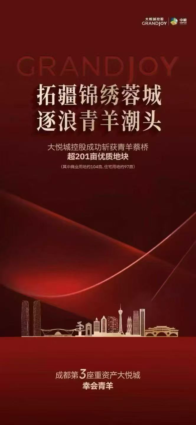 11月19日,备受瞩目的青羊区蔡桥4宗土地最终被大悦城拿下,总花费26.5亿元。这或许意味着成都将真正迎来第三座大悦城商业综合体。
