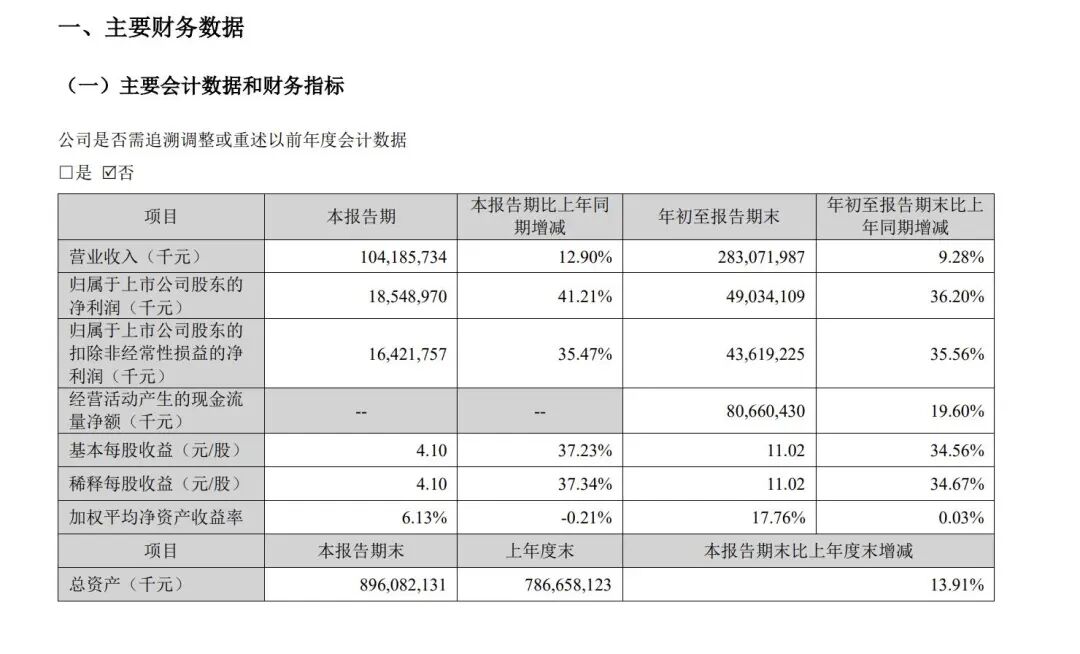 2025年第三季度,宁德时代营收1041.86亿元,同比增长12.9%;净利润为185.49亿元,同比增长41.21%;净利润率达到19.1%,同比增长4.1个百分点。