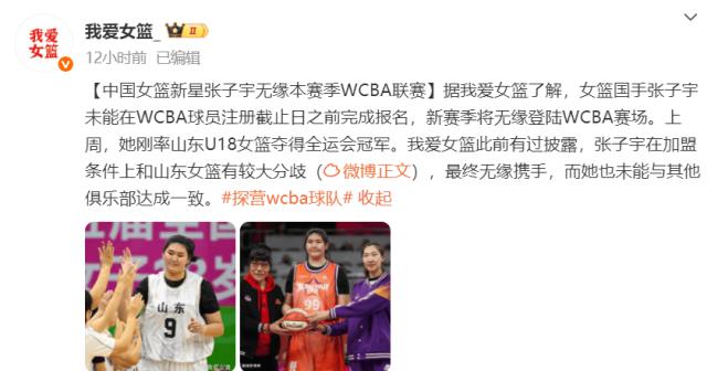 前几天,张子宇还代表山东队参加全运会,并帮助球队获得U18女篮冠军。但全运会结束后,张子宇与山东队就登陆WCBA联赛一事进行谈判,双方分歧较大,未能达成一致,导致张子宇错过注册时间。此外,四川队等其他俱乐部也曾追求张子宇,但都没有成功。