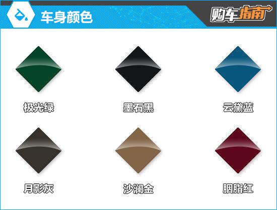 新车有6种车身颜色可供选择,沙澜金和胭脂红需选装,官网显示选装价格为6000元。个人推荐极光绿和墨石黑,前者个性前卫,后者成熟稳重,且这两款颜色无需额外选装费用,性价比高。