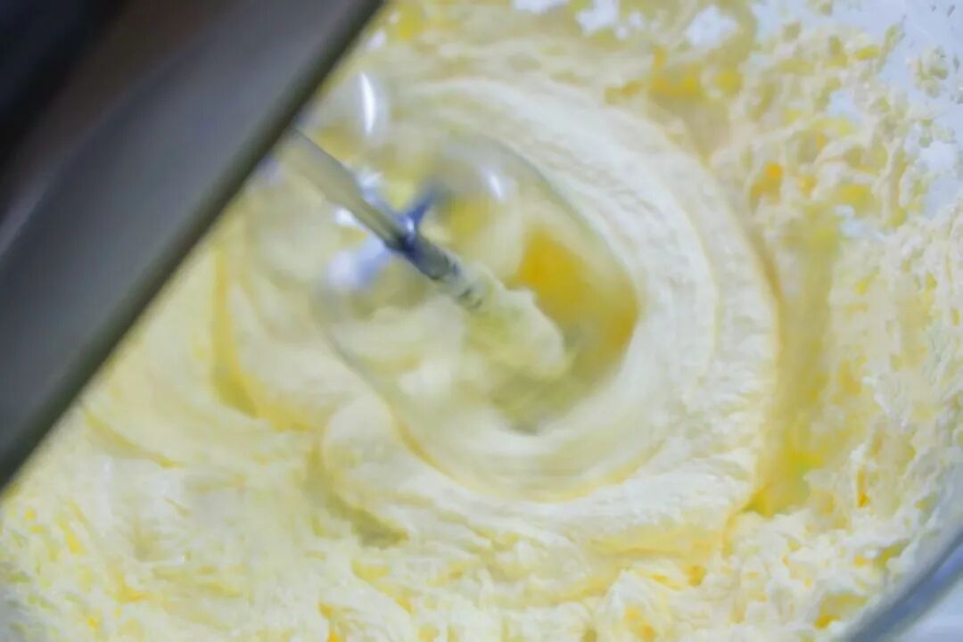 2. 接着加入糖粉搅打至发白膨松状态。
