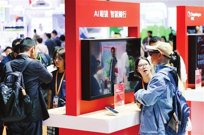 技术与生态融合也是高通公司展台的特色。12款搭载高通第五代骁龙8至尊版移动平台的中国品牌手机齐聚一堂,这是最新一代“骁龙旗舰手机全家福”首次在国内大型线下展会亮相。此外,高通与中国企业在个人电脑及智能网联汽车领域的创新合作也得到全面展示。