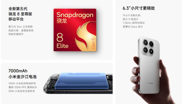 小米 17 重新定义了小屏旗舰的标准,通过续航革命突破了小屏旗舰的性能限制,主要面向追求极致性能和续航的用户群体。该机型配备 6.3 英寸 1.5K 分辨率 OLED 柔性直屏,显示效果细腻,在户外也有良好的可视性。其窄边框设计提高了屏占比,结合航空铝中框与丝绒喷砂工艺,在握持手感和质感上达到了完美平衡,雪山粉、冰融蓝等时尚配色更显个性与高级质感。