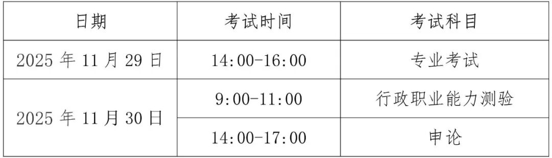 据海南省考试局消息,相关笔试11月29日9时至12时开考。中央机关及其直属机构2026年度考试录用公务员笔试时间为11月29 - 30日,专业科目11月29日14 - 16时,行测11月30日9 - 11时,申论11月30日14 - 17时。笔试准考证下载打印时间不同,考生需自行登录国家公务员网上报名系统下载打印。