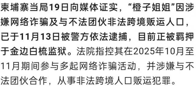▲“橙子姐姐”在柬埔寨落网