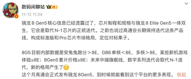 不知道大家是否还记得,之前骁龙 8 Elite Gen 5 发布时,高通曾简单提及过骁龙 8 Gen 5。如今,它真的要来了。