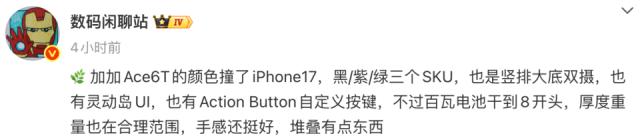 关键是价格。可以看出一加 Ace 6T 的定位和一加 Ace 6 比较相似。作为参考,一加 Ace 6 的首销价是 2599 元起步,大家觉得 Ace 6T 定价多少合适呢?