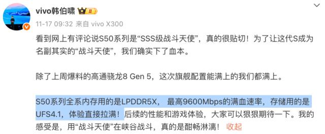 存储方面,S50 Pro mini 采用了最高 9600Mbps 的 LPDDR5X 以及 UFS4.1,这对于 S 系列来说有些出乎意料。