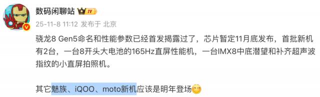 此外,魅族、iQOO、moto 摩托罗拉也会推出骁龙 8 Gen 5 机型,但目前还没有爆料,发布时间已排到明年,下次再聊。