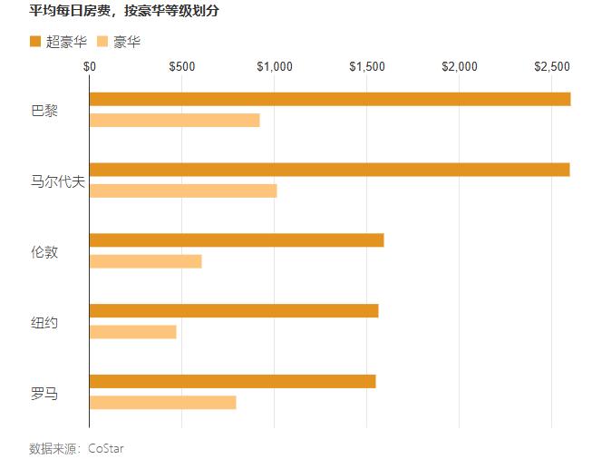 为何南极游轮头部品牌稳健,小公司却频频爆雷?这与酒旅出行市场的贫富差异有关。我在洛杉矶与经营小型奢华酒店的朋友闲聊得知,近两年美国高等级酒店价格涨幅更大。据CoStar数据,美国豪华酒店平均房价已达394美元,比次一级酒店高出168美元,且差距还在拉大。这种分化在全球主要酒店市场都存在,如巴黎、纽约的豪华酒店价格远超普通酒店。