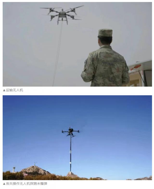 接到指令后,运输无人机飞抵目标区域,通过一系列精细操作,成功抓取未爆弹,并将其转移至待销毁区域。