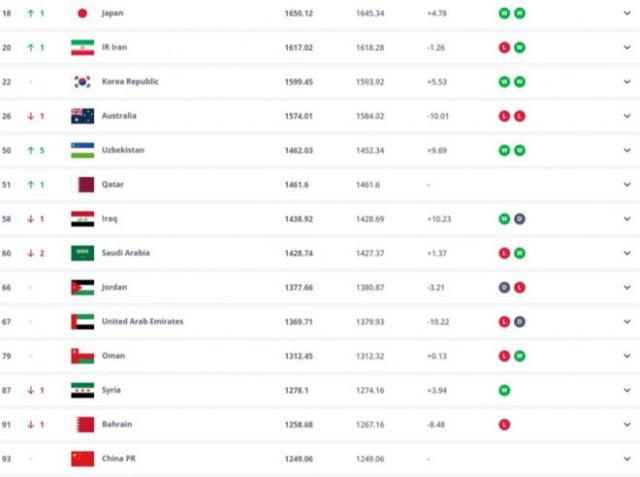 不踢比赛就不扣分!国足4个月未赛仍居FIFA第93、亚洲第14