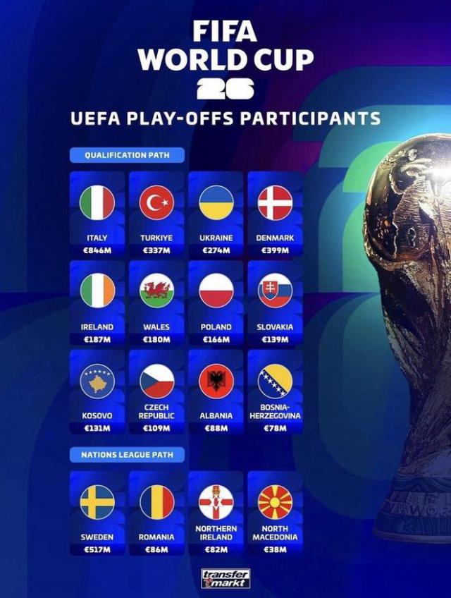 世界杯最后6席争夺!今晚附加赛抽签,意大利迎生死战,伊拉克赢一场或出线