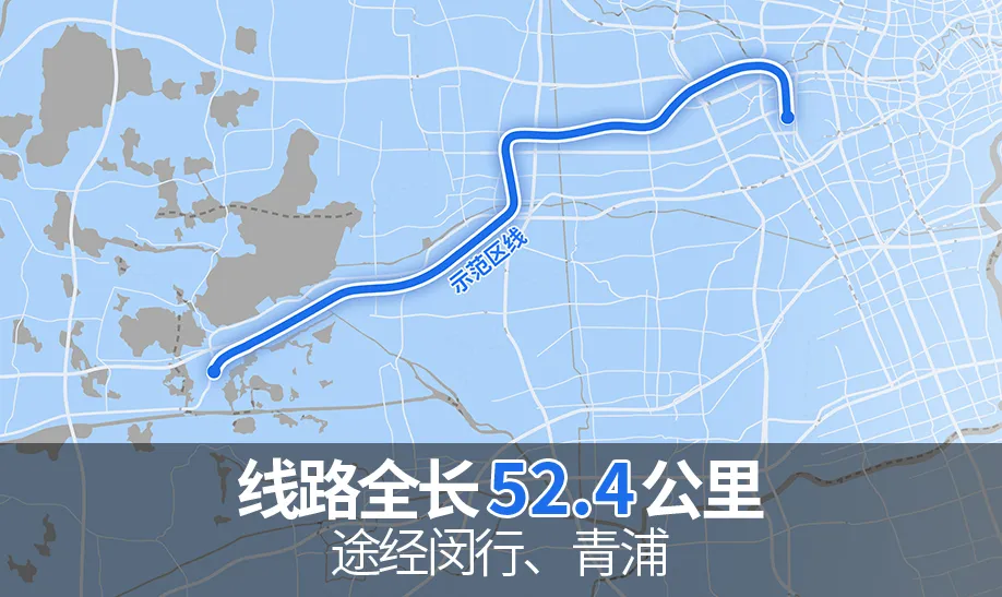 上海示范区线全长 52.4 公里,途经闵行、青浦 2 个行政区,全线共设 10 座车站,列车最高运行时速 160 公里。项目建成后,将构建起连接上海主城区、青浦新城与嘉善、吴江等地的快速交通骨架。作为沪苏嘉城际铁路上海段,上海示范区线不仅是长三角生态绿色一体化发展示范区的门户线路,也是上海市域线网的重要组成部分。