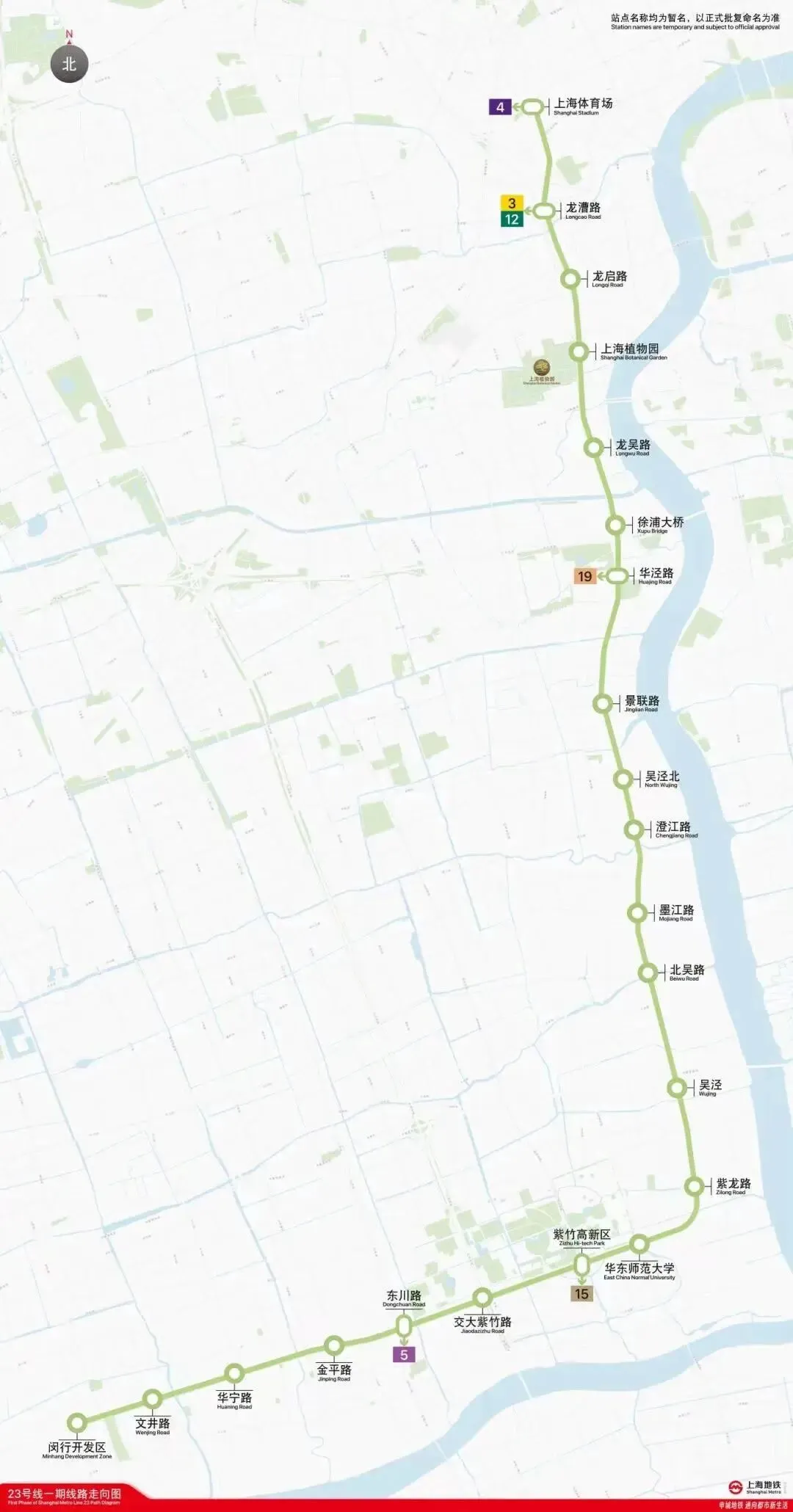 23 号线一期工程自闵行开发区站至上海体育场站,线路全长约 28.6 公里,共设 22 座车站,串联了闵行开发区、紫竹高新区、吴泾转型区、徐汇滨江等重要区域。该线对加强老闵行至市区之间的轨道交通服务,带动浦西南部区域发展具有重要意义。
